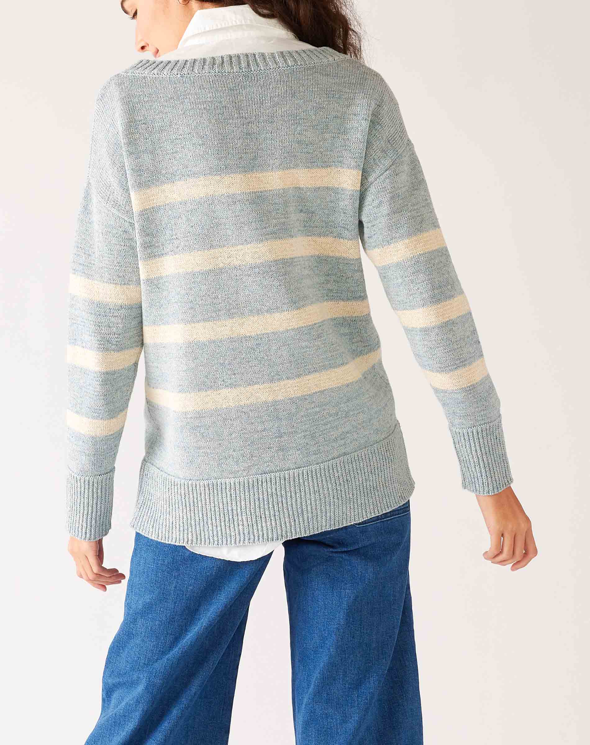 Experience the luxurious blend of linen and cotton with Mersea's Boatneck Sweater. Featuring a stylish striped design on the body and sleeves, this premium sweater boasts long sleeves and is made of 55% cotton, 27% polyester, and 18% linen. Plus, it is completely washable for easy maintenance. Elevate your wardrobe with this exclusive piece.