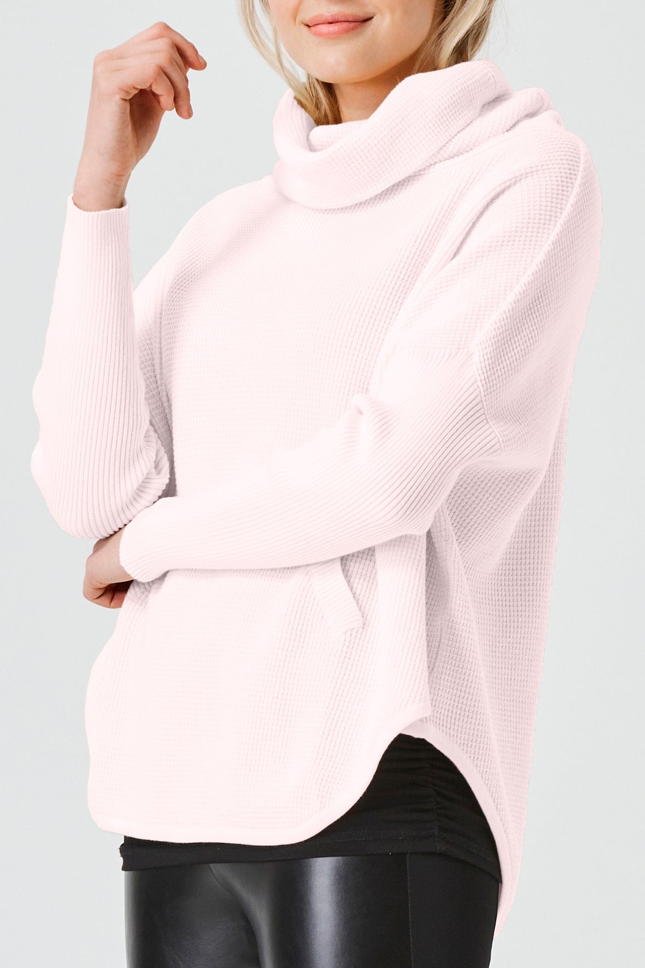 Planet's textured lightweight Pima cotton thermal cowl is a fan favorite and a perfect piece to add to your closet. Easy shape features drop shoulders, swingy curved hems, ribbed sleeves and cowl neck drapes beautifully with your body. Faux pockets finish the look. Whether you're jetting off on a journey or seeking a cozy yet chic addition to your wardrobe, this travel-friendly piece proves to be an indispensable asset to your style collection.