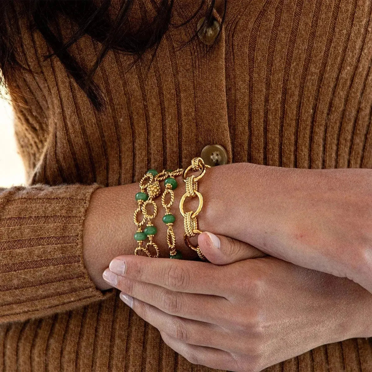 Jade, 18K Gold over Brass with Anti-Tarnish Coating