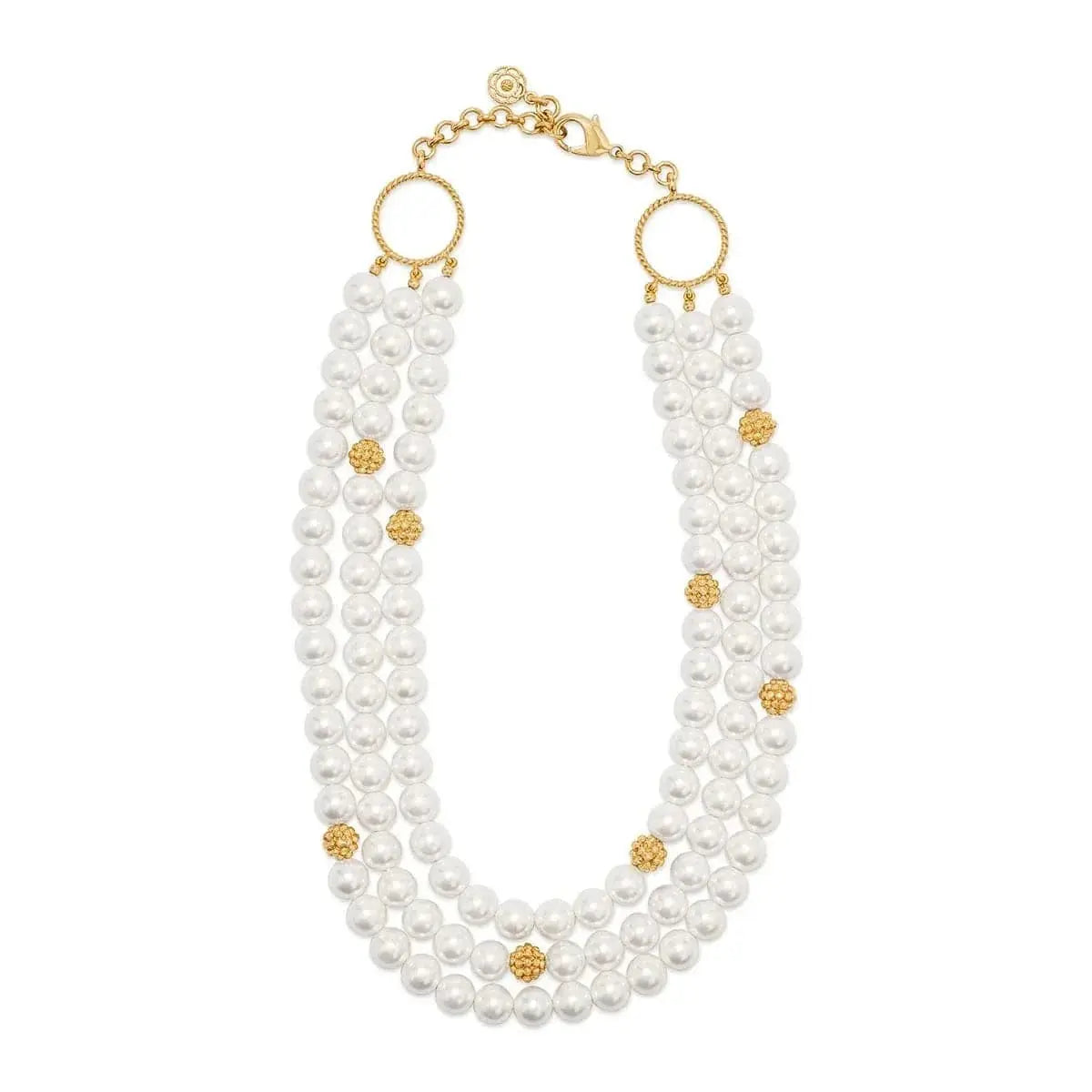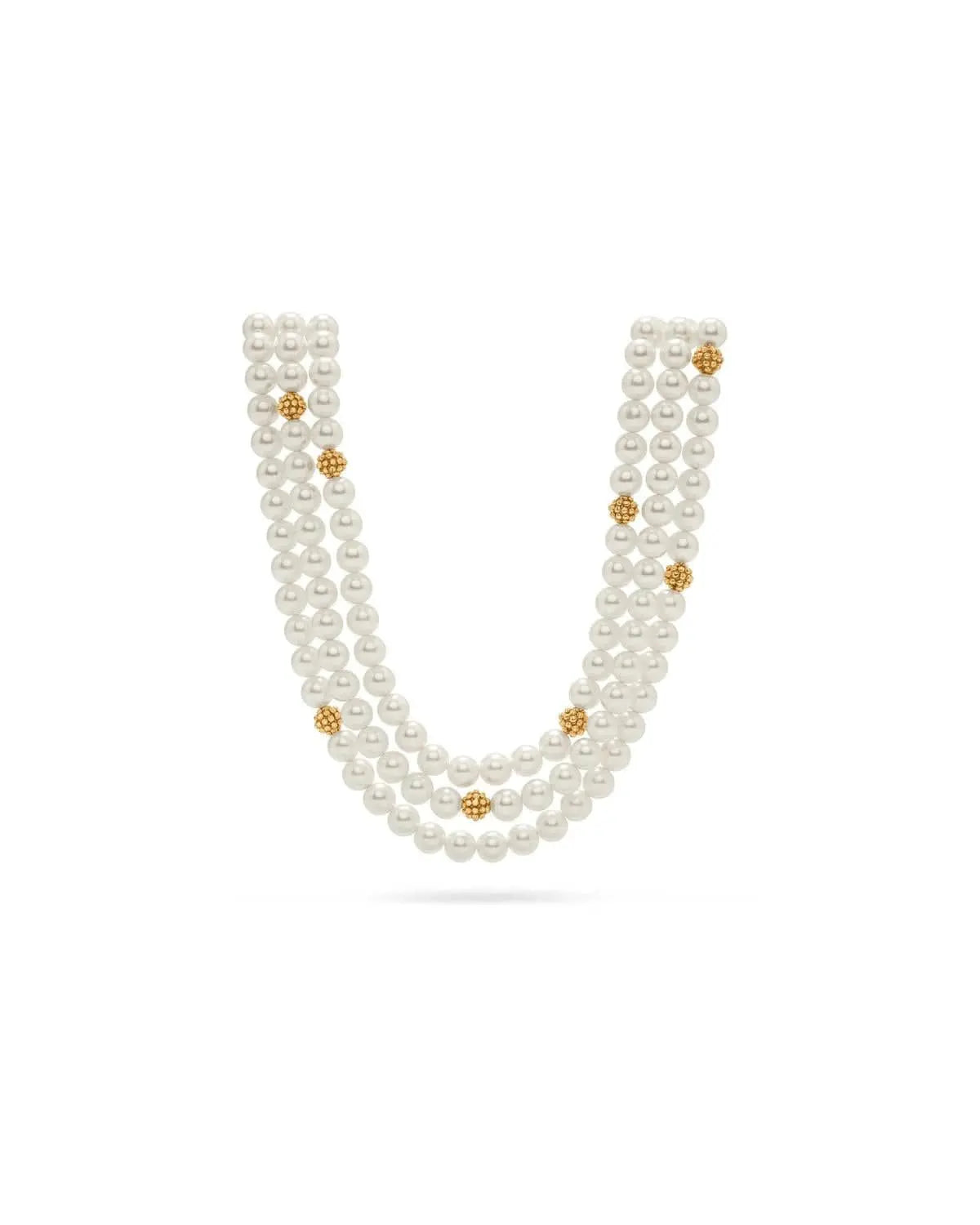 Simultaneously decadent and earthy, this triple-strand statement piece sings with any outfit, for any occasion, with its ropes of polished beads. Exquisitely finished with bright gold details, from the intricate clasp (note that tiny blossom and twisting thread motif) and dotted with a sprinkling of gilded berries throughout.