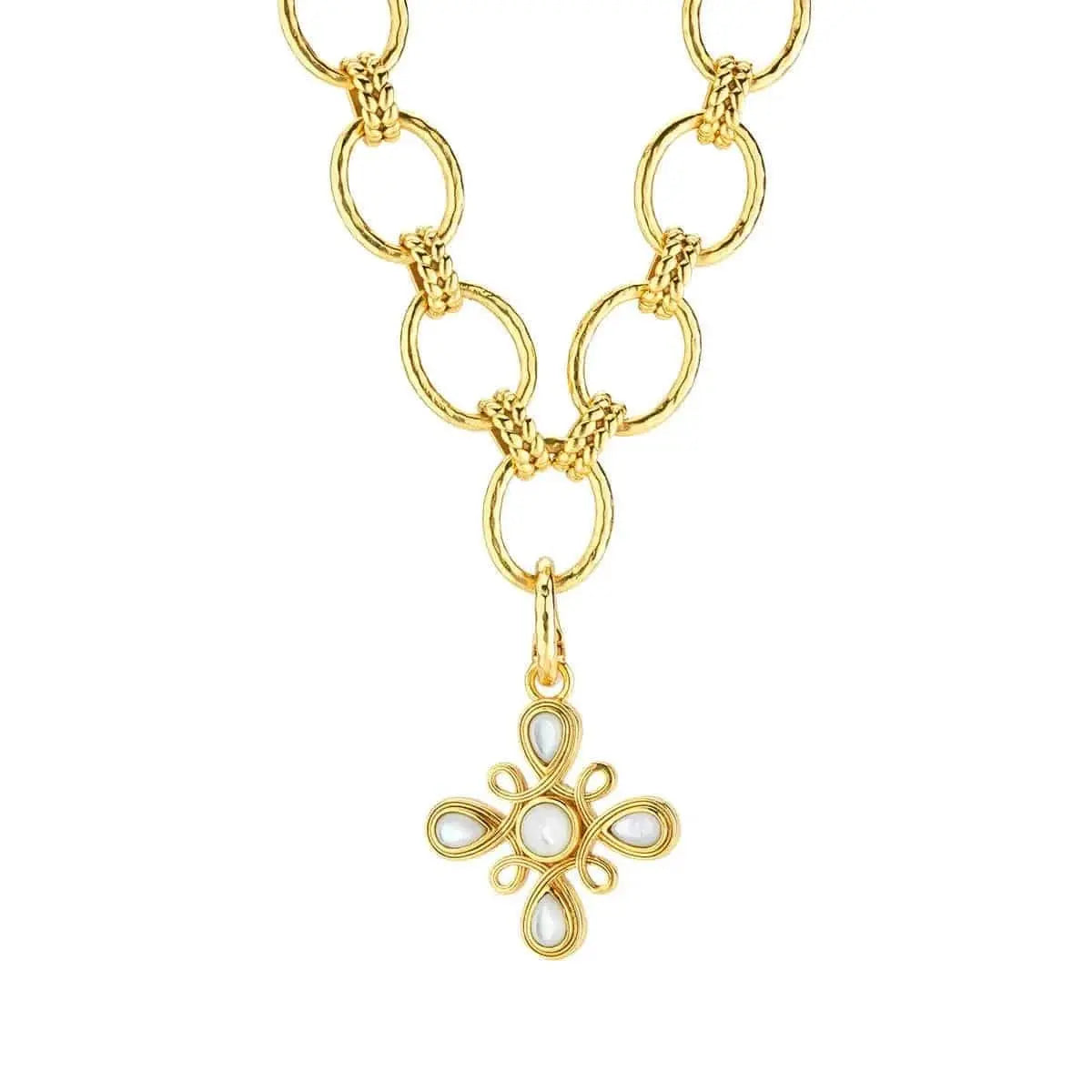 This swirling, golden pendant portrays an ornate compass with the points of north, south, east and west in luminous mother of pearl to remind you to trust your instincts and follow your own true north, your inner light. From bracelet to necklace, this charm works on any chain and makes a fabulous gift for someone special (including yourself)!