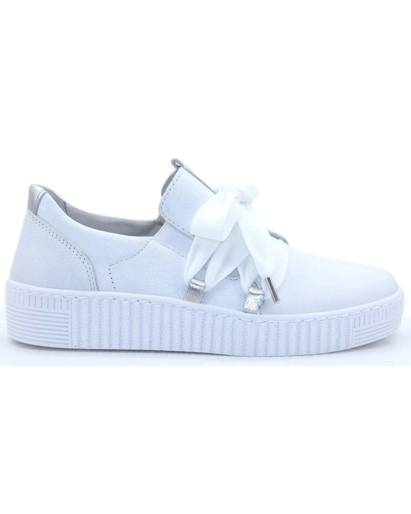 Spruce up your casual wardrobe with these Gabor white sneakers with tie. Their rounded toe and generously-sized laces lend a touch of classic sophistication, while their textile lining and comfortable footbed provide all-day comfort. Finished with a long-lasting man-made outsole.