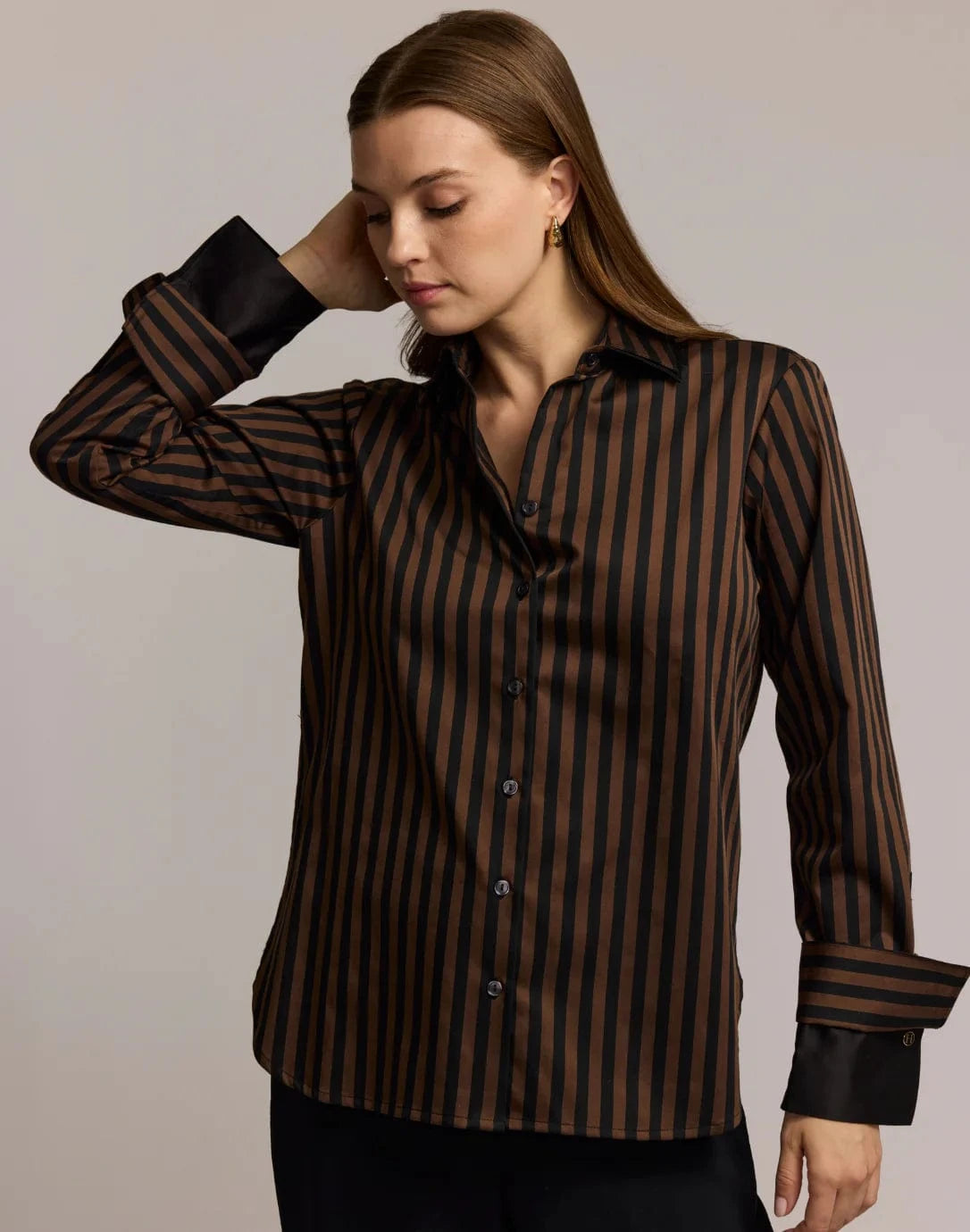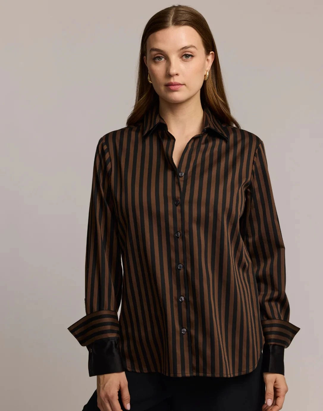 Hinson's fan-favorite Stripe/Gingham program is crafted from 100% cotton, offering a crisp, clean feel with natural breathability. This pure cotton fabric is soft yet structured, giving these shirts a polished look that drapes beautifully while remaining comfortable for all-day wear. With a smooth finish and timeless appeal, this fabric is perfect for creating effortlessly classic styles that are both versatile and refined.
