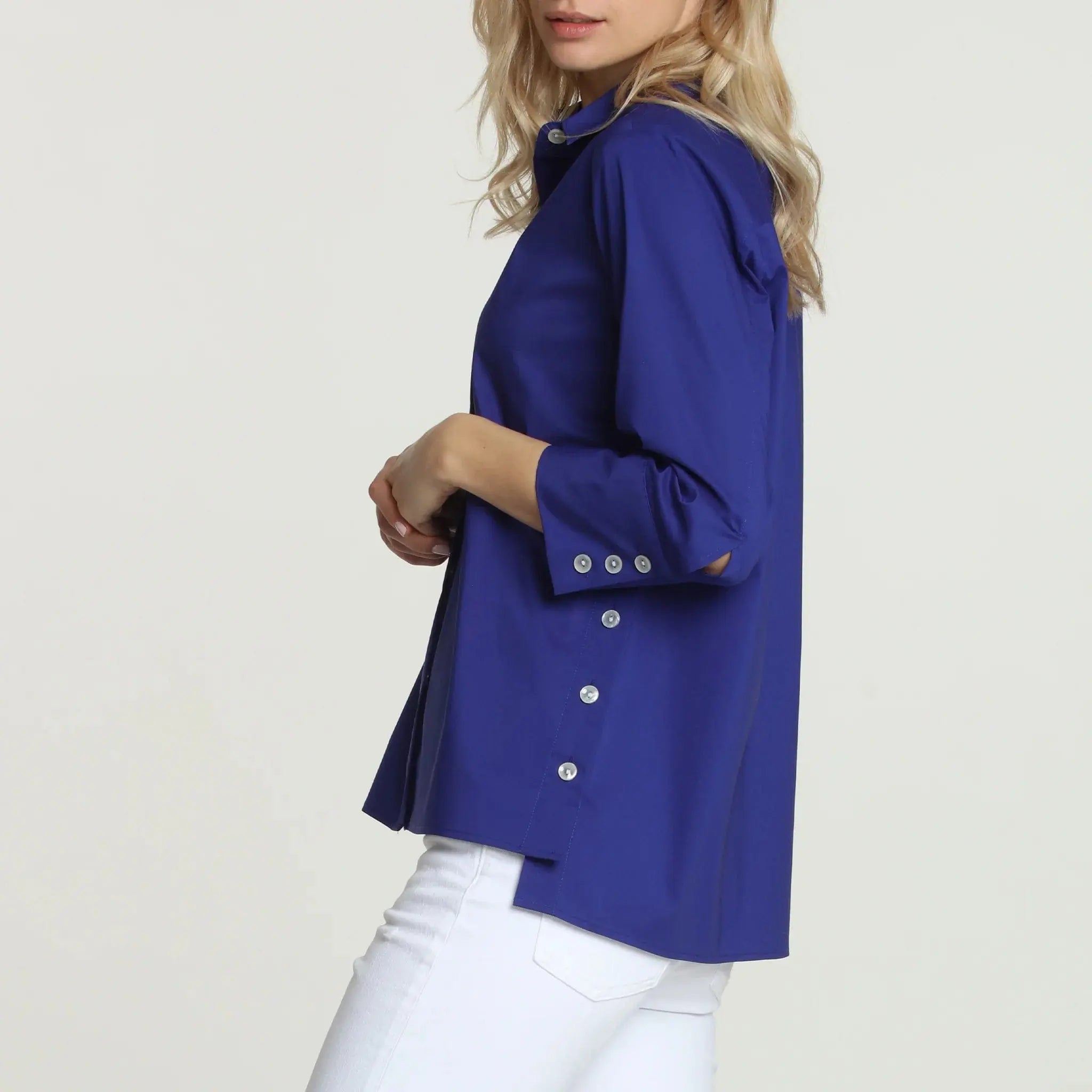 The much-loved Maxine returns as a 3/4 sleeve shirt, complete with functional side button vents and perfectly proportioned high-low hems.